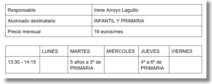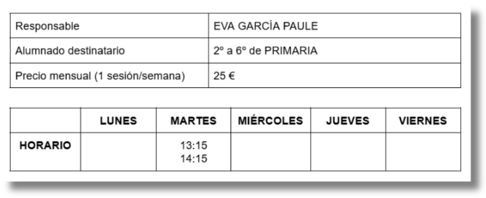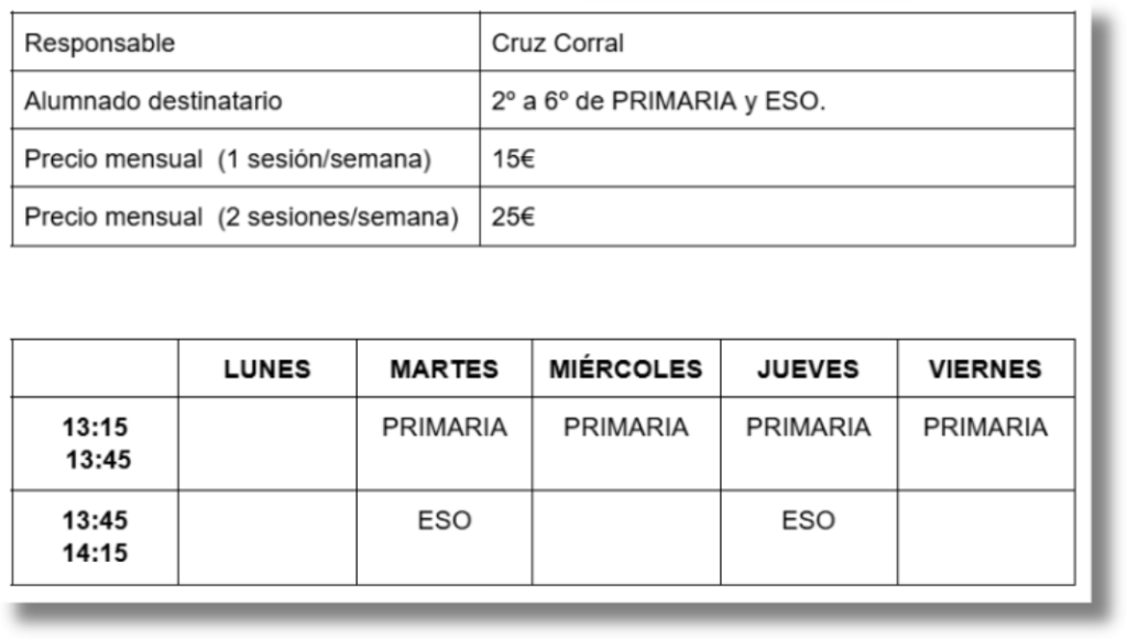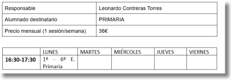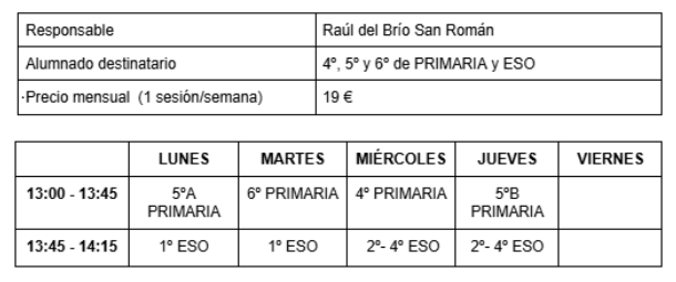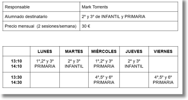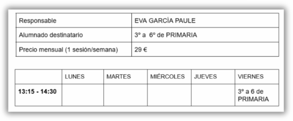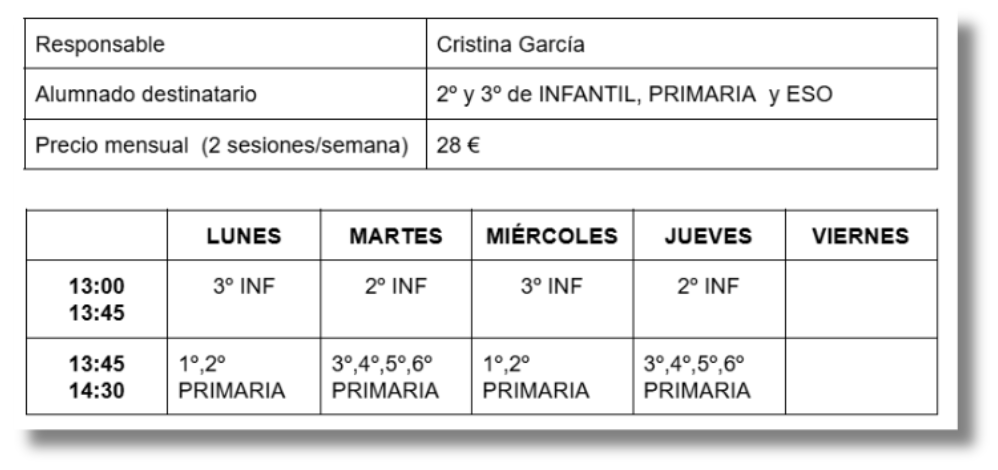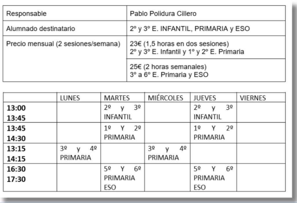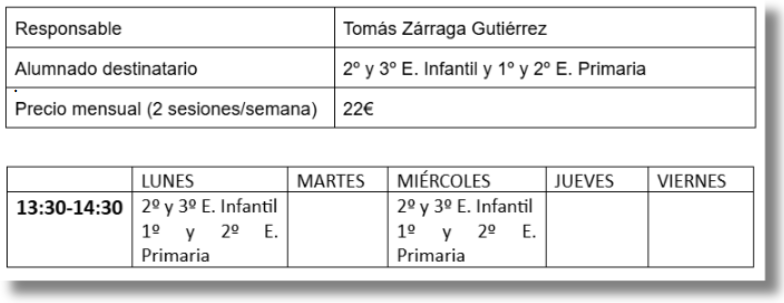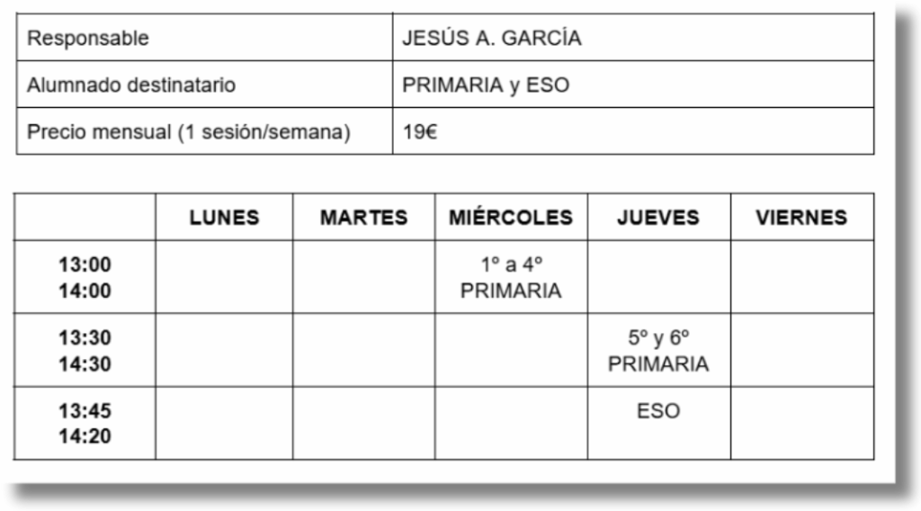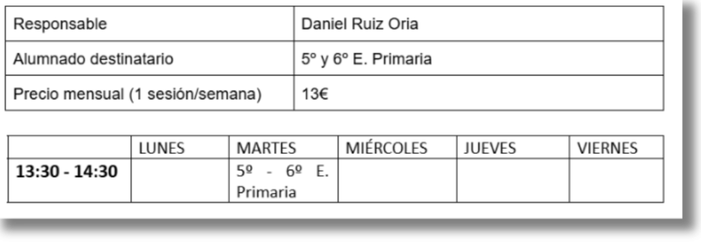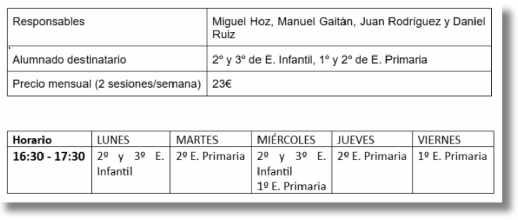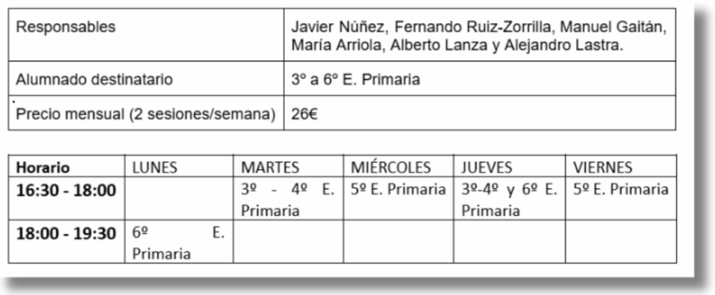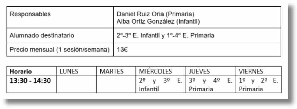 Las inscripciones se realizarán en riguroso orden, teniendo prioridad quienes ya han participado en la extraescolar el curso anterior.