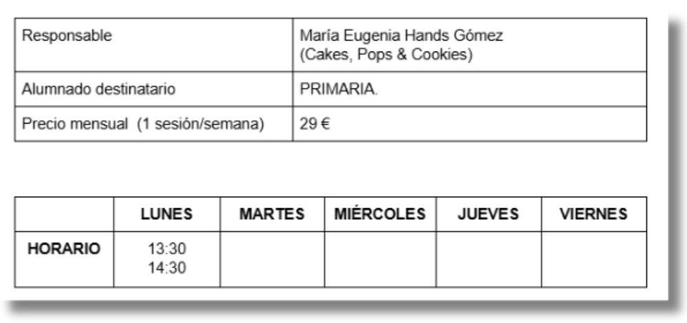 Hora semanal divertida en la que se preparan postres originales, dulces, cupcakes, popcakes,…,y en la que los niños y las niñas disfruten del arte de la repostería mientras aprenden inglés.