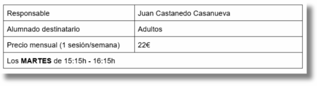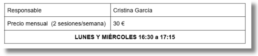 Para poder desarrollar la actividad habrá que formar un grupo mínimo de 7 inscritos/a