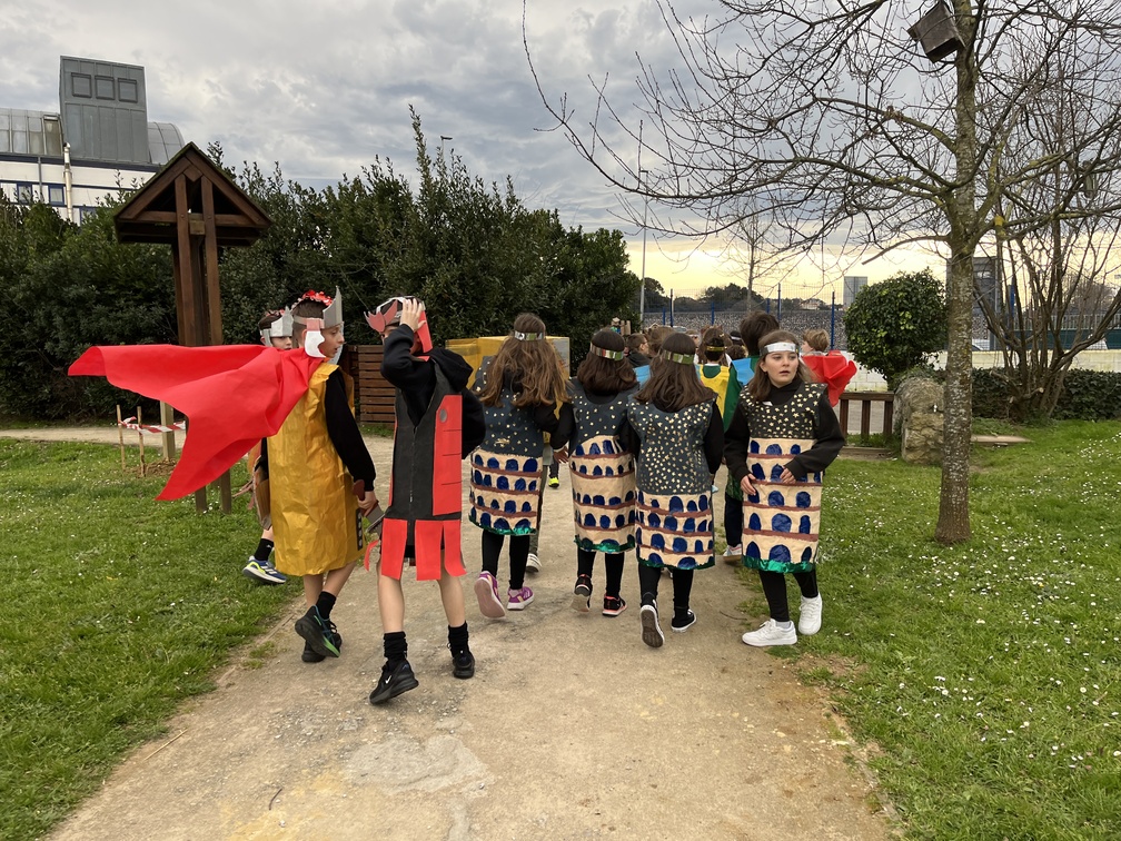 El viernes empezamos la mañana con el gran desfile. El viento no nos permitió salir a desfilar por el pueblo, pero lo hicimos en el pabellón, donde pudimos viajar a Perú, China, India, Egipto… y disfrutamos viendo todos los disfraces de todas las clases de Infantil y Primaria.