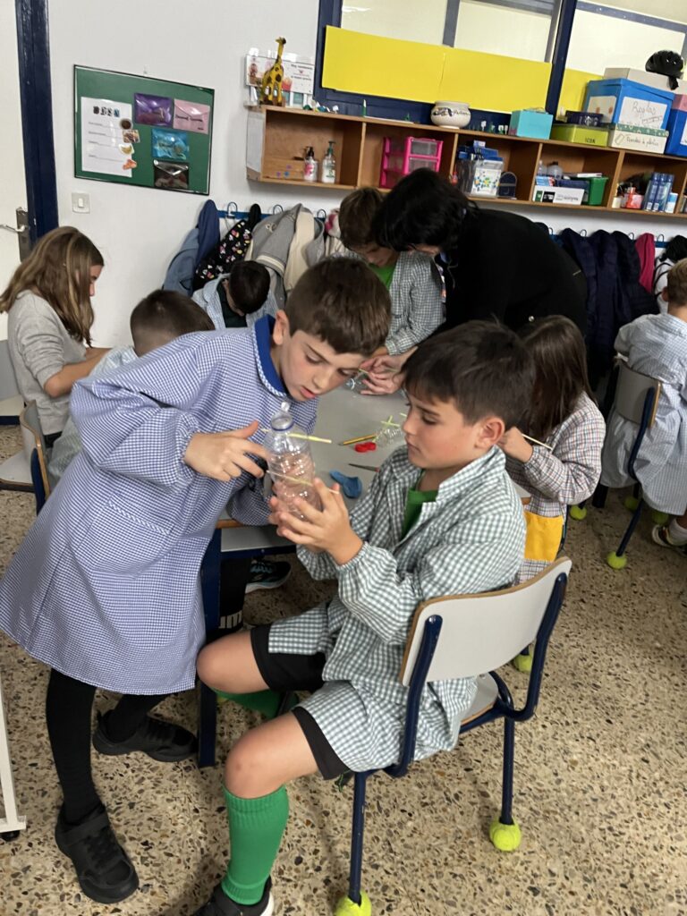 Al principio, estaba muy nervioso pero cuando empecé a hablar y a explicar me fui tranquilizando. Los primeros pasos fueron fáciles pero a medida que iba avanzando, se iba complicando y luego al final había un paso que se necesitaba unos cutters para cortar la parte de debajo de la botella y era muy difícil porque estaba muy dura. Yo no podía cortarla y cuando estaba intentándolo, el cutter se soltó de la botella y me corté, fui al baño y me lo limpié. Luego volví y faltaba solo un paso, lo terminamos y había unas pocas personas que les salía bien.