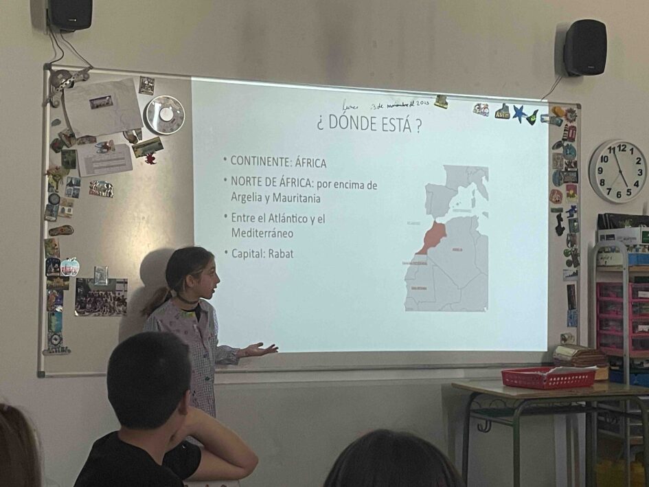 Esta semana Elia ha ido a Marruecos y nos ha traído una presentación. Nos ha estado explicando dónde está Marruecos ,Ceuta y Melilla. Los marroquíes dicen que las tierras de Ceuta y Melilla son suyas.