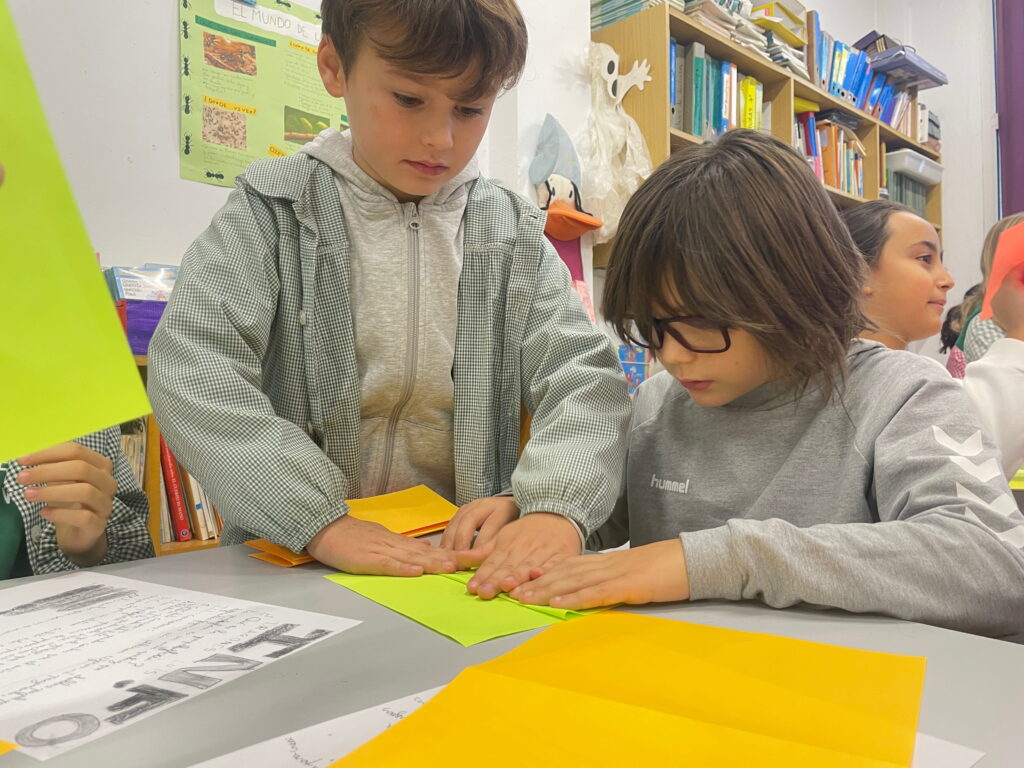 El día de soy profe comencé presentando a mi familia, que vinieron a echarme una mano, y seguí explicando qué era la papiroflexia y cómo se hacían los dragones. Luego repartí una hoja informativa a cada compañero y les enseñé los dragones como modelo.