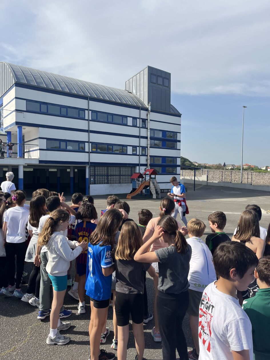 El jueves 9 de abril todo el cole hizo una carrera solidaria. La organizó 3º de la ESO. Antes del día de la carrera pasaron por las clases pidiendo que la gente traiga un poco de dinero para una ONG llamada SEO BIRDLIFE. Llega el día de la carrera y los turnos iban de curso en curso. Después de cada carrera te daban un batido de fresa.